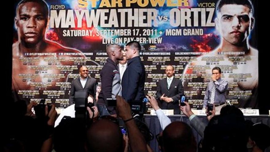 Floyd Mayweather Jr. dijo el martes que jamás acusó a Manny Pacquiao de tomar esteroides y se mostró dispuesto a pelear contra el astro filipino. El púgil estadounidense visitó Nueva York para promover su combate del 17 de septiembre contra su compatriota Víctor Ortiz, campeón welter. La pelea en el hotel y casino MGM Grand de Las Vegas será la primera vez que Mayweather suba al cuadrilátero en año y medio. Eso no significa que Mayweather haya estado lejos de las peleas. Ha librado varias fuera del ring. Mayweather fue demandado por difamación en una corte federal, luego de que supuestamente acusó a Pacquiao de consumir drogas para mejorar su desempeño. Además, enfrenta cargos criminales que se derivan de una disputa doméstica, así como demandas por hostigamiento y agresión, en distintos casos. Aunque es posible que nunca se enfrenten en el cuadrilátero, parece que siempre habrá un vínculo entre Mayweather y Pacquiao. Durante años, ambos han coqueteado con la posibilidad de pactar la pelea con la bolsa más jugosa de la historia, sin llegar a un acuerdo. Ahora que su rivalidad ha llegado hasta los juzgados, no sorprende que Mayweather haya dedicado el martes casi tanto tiempo a hablar de Pacquiao como a hablar de Ortiz. "Nunca he dicho que Pacquiao haya tomado esteroides, nunca dije que tomara drogas para mejorar su desempeño", dijo Mayweather, quien a comienzos de este mes no cumplió con una comparecencia ante la corte en Las Vegas en relación con esa demanda. Mayweather dijo que está dispuesto a enfrentar al "Pac-man". "Quiero pelear contra los mejores que haya, no sólo contra él", aseguró. "Si él está en esa lista como uno de los mejores, absolutamente quiero enfrentarlo". Sin embargo, puso como condición que haya análisis aleatorios de sangre y orina, una exigencia más estricta que la contemplada por la mayoría de las asociaciones atléticas estatales. Según Mayweather, los apoderados de Pacquiao sólo han accedido a que se realicen análisis de sangre y orina programadas. "Esto no es sólo por Pacquiao, sino por todo el deporte, punto", dijo Mayweather. "Si miras los Juegos Olímpicos, hay trampa. Todos hacen trampa. Y yo nunca dije que Manny Pacquiao hiciera trampa, sólo dije que yo y mi rival debemos hacernos el análisis". Mayweather peleará por vez primera desde mayo del 2010, cuando venció a Shane Mosley. Ortiz, de ascendencia mexicana, fue considerado al comienzo de su carrera como un astro en ciernes y potencial sucesor de Oscar de la Hoya, cuya compañía lo promueve. Tras algunos altibajos, dio la sorpresa en abril pasado al derrotar al haitiano-estadounidense Andre Berto para apoderarse del cetro welter.