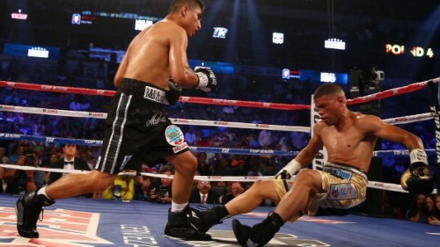 "Mikey" García frenó al boricua Juan Manuel López el sábado por la noche en el cuarto asalto de su pelea peso pluma de la Organización Mundial de Boxeo, dejando vacante el título un día después de que el mexicano-estadounidense no diera el peso. El viernes, García dio un peso de 128 libras (58 kilogramos), dos libras (900 gramos) más que el límite en la categoría. El peso de López fue de 125,5 libras (56,9 kilos). "Juanma" hubiera podido conquistar el cetro con un triunfo. García noqueó a López con un duro golpe de izquierda cuando iban apenas 1:34 minutos del cuarto asalto. López parecía inseguro al comienzo del round. En el segundo asalto, García derribó a López, pero el puertorriqueño de inmediato se puso de pie y terminó el asalto. El púgil californiano había obtenido el cinturón al imponerse por decisión unánime al mexicano Orlando Salido en un combate realizado en enero, en Nueva York. Tiene foja de 32-0 con 27 nocauts. Sin embargo, el reinado duró poco, dado que García no dio el peso. Las únicas dos derrotas de López en su carrera fueron ante Salido. La primera le costó el cetro de la OMB y la segunda derivó en una suspensión de un año por parte de las autoridades boxísticas de Puerto Rico, luego que el púgil dijo que el réferi que había parado la pelea había apostado en la misma. López ha ganado dos veces desde que cumplió su suspensión por un año. En febrero, se impuso al brasileño Aldimar Silva Santos y en abril noqueó al mexicano Eugenio López en la Ciudad de México.
