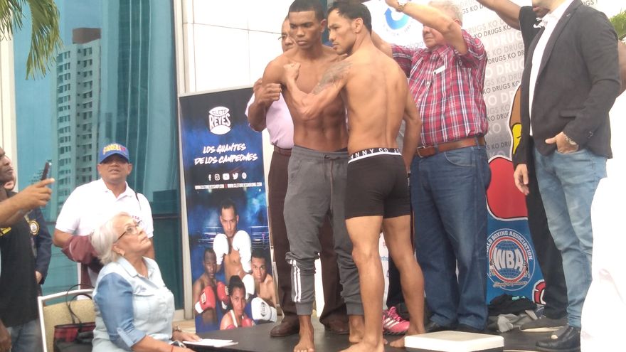 Por otra parte, el cubano Daniel Matellón y el mexicano Erik López pesaron 107 3/4 libras cada uno para su contienda por el título interino minimosca de la AMB.