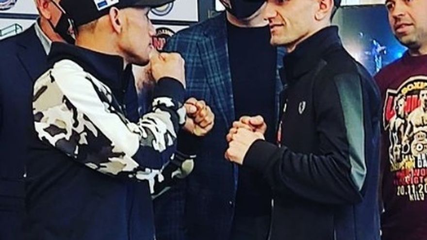 Los dos púgiles se vieron las caras durante la conferencia de prensa previa a la cartelera que será encabezada por ese encuentro y que se realizará el sábado 20 de noviembre en el AKKO International de Kiev.