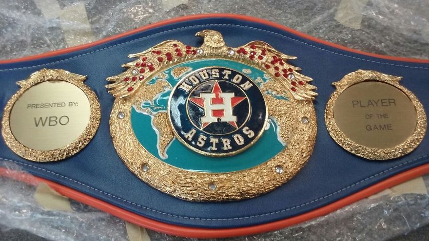 La organización boxística creó un cinturón color azul y en el centro de él tiene el escudo de la novena de Houston.