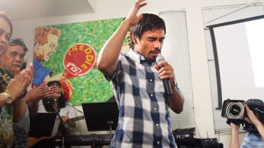 A pocos días de su pelea contra Timothy Bradley, Manny Pacquiao abrió un espacio en sus entrenamientos para dedicarlo a Dios. El boxeador filipino tuvo ayer un tiempo de estudio bíblico con su pastor Jeric Soriano luego de culminar su jornada de prácticas de ayer. Ese momento también fue aprovechado por el campeón mundial welter del Consejo Mundial de Boxeo (CMB) para cantar en alabanza a Dios. En días pasados, Pacquiao manifestó públicamente que profesa el cristianismo, expresando que ha ido dejando algunas costumbres que ya eran conocidas en él como su afición a los juegos de azar y su gusto por el licor. Bradley y Pacquiao pelearán por el cinturón welter del CMB en el MGM Grand Garden de Las Vegas el sábado 9 de junio.