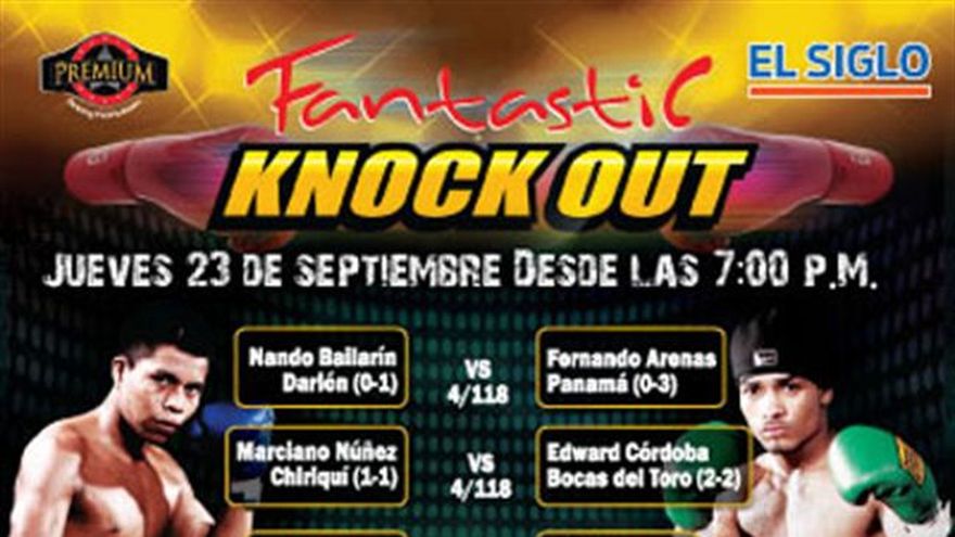 Premium Boxing Promotions continúa desarrollando las carreras de los talentos jóvenes del boxeo panameño y este jueves volverá a deleitar a los fanáticos del sector este de la capital con otra de sus carteleras Fantastic Knock Out en el Fantastic Casino del Centro Comercial La Doña en la 24 de Diciembre. La entrada es gratuita, serán seis combates de boxeadores principiantes de Bocas del Toro, Coclé, Chiriquí, Darién, Los Santos y diversas áreas de la capital como La Chorrera, San Miguelito, Pedregal y el corregimiento 24 de Diciembre. Adir Sánchez vs Roberto Small Panamá (4-1) 4/135 Bocas del Toro (2-2) José Luis Calvo vs Jahat Callender Los Santos (1-2-1) 4/114 Panamá (1-0) Marciano Núñez vs Edward Córdoba Chiriquí (1-1) 4/118 Bocas del Toro (2-2) Nando Bailarín vs Anastacio Zurdo Darién (1-1) 4/118 Chiriquí (0-2-1) Joel Blanco vs Aurelio Acosta Panamá (Debutante) 4/130 Bocas del Toro (1-0) Davis Reyes vs Leroy Estrada Coclé (Debutante) 4/105 La Chorrera (Debutante)