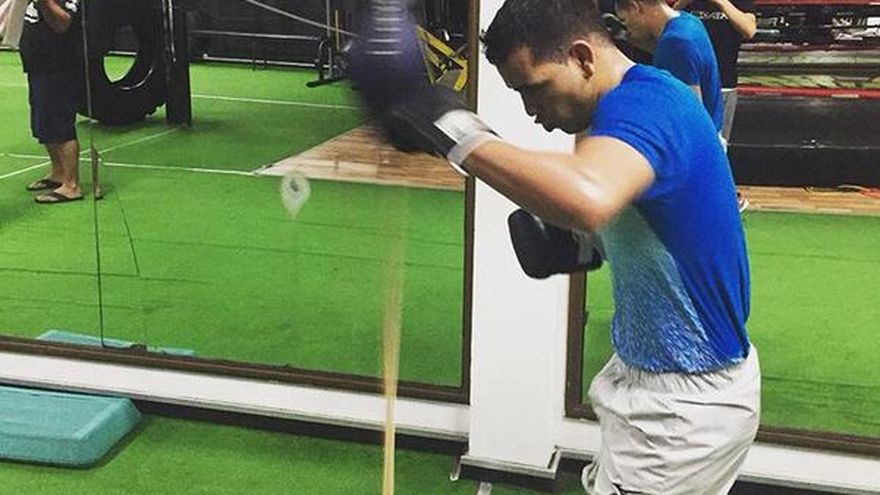 “A ocho días de la pelea me siento muy bien, agradecido con la vida, con Dios por darme salud y talento para el boxeo”, declaró el campeón al finalizar su entrenamiento este viernes.