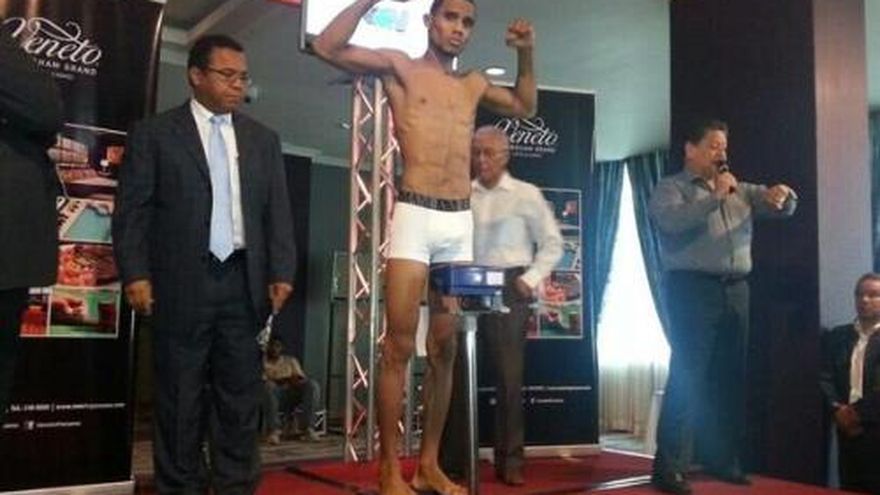 Con la utilización de una pesa digital, algo que era inédito en el boxeo panameño, se realizó la ceremonia de pesaje previo de los boxeadores que participarán en la cartelera "Ahora Vengo Yo" que se realizará mañana en el Hotel Veneto y Casino de la ciudad de Panamá. Manuel "El Escorpión" Vides (14-2-0, 8 nocauts) requirió de dos intentos para hacer el peso límite de la división supermosca, 115 libras. Mientras que su rival, Octavio "Pacquiao" Abrego (6-1-0, 4 nocauts) detuvo la pesa en 114 libras en una sola ocasión. Vides registró 116 libras en su primer intento, por lo que se le dio una hora de plazao para hacer las 115, algo que logró en ese tiempo. Ambos boxeadores son los protagonistas del combate estelar de la velada que está pactado a ocho asaltos por el título latino interino supermosca del Consejo Mundial de Boxeo (CMB). Un total de seis peleas están programadas para ese evento boxístico. FOTO: Aurelio Ortiz (twitter)