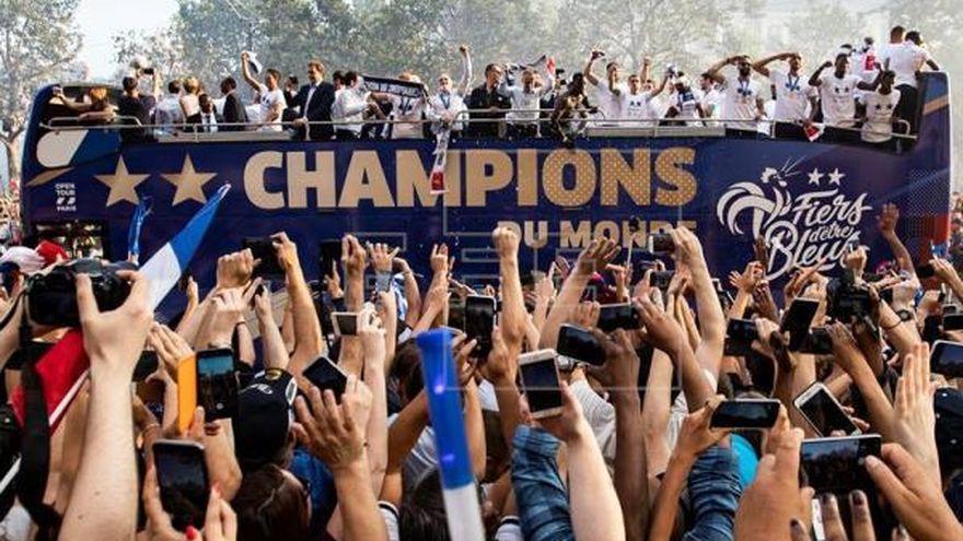 Antes de recibir la felicitación del presidente, Emmanuel Macron, en nombre de toda la nación, fue una parte importante la que les aclamó, como 20 años antes hicieron con sus antecesores. Los Griezmann, Mbappé y compañía recibieron el mismo baño de masas, en el mismo escenario que se llevaron en 1998 la tropa de Zidane y Desailly.