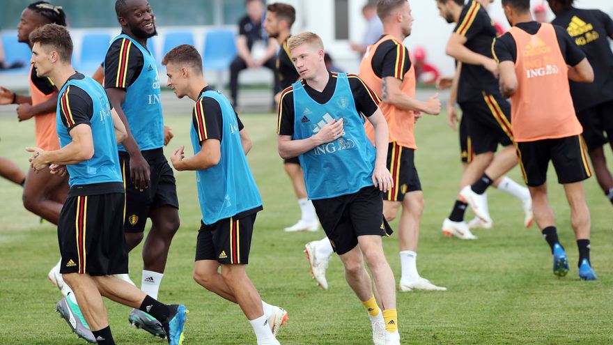 El entrenador Martínez, quien renovó en mayo su contrato como seleccionador de Bélgica para los próximos dos años, dialogó durante varios minutos con el creativo Kevin de Bruyne.