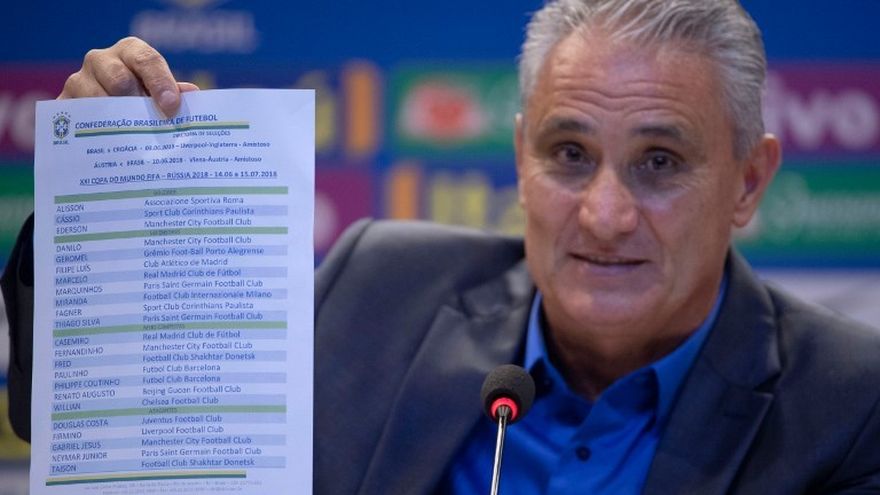 La lista ya permite prever una alineación titular para el debut de Brasil el 17 de junio frente a Suiza en Rostov, con el tridente ofensivo integrado por Phillipe Coutinho (Barcelona), Neymar (PSG) y Gabriel Jesús (Manchester City).