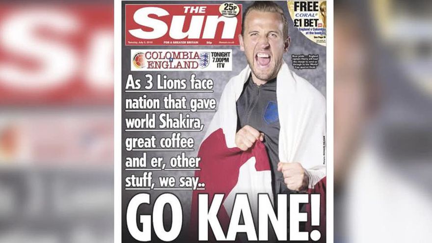 "Go Kane!", tituló el tabloide en portada, con una foto del delantero estrella inglés Harry Kane.
