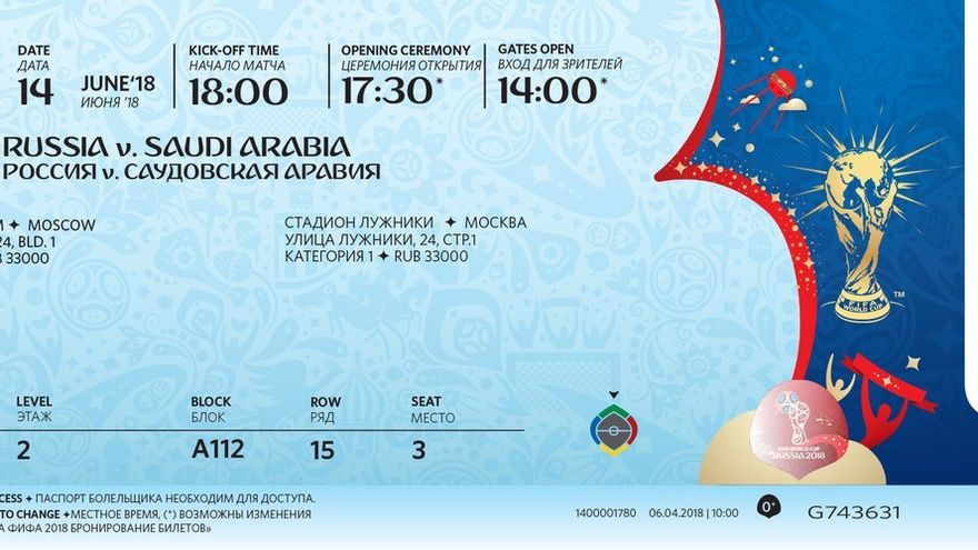 La Federación Internacional de Fútbol (FIFA) presentó en su sitio oficial el diseño de las entradas para los partidos del Campeonato Mundial de Fútbol de 2018 en Rusia.