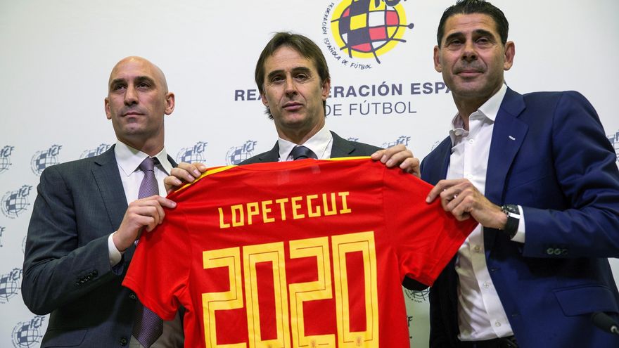"Vamos a proceder a firmar la renovación si la podemos llamar así, o un contrato por dos años más", declaró el nuevo presidente de la RFEF, Luis Rubiales, en una conferencia de prensa cerca de Madrid junto al propio Lopetegui.