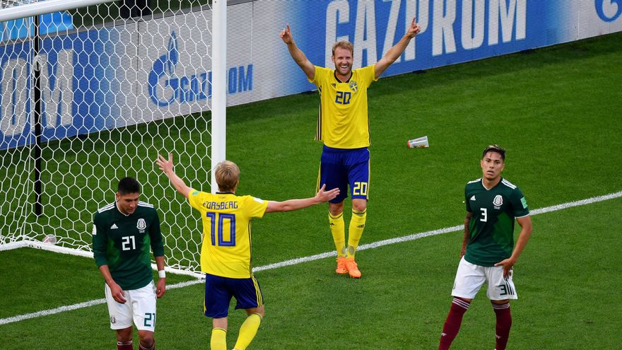 Al descanso se llegó con empate sin goles, pero en los primeros doce minutos de la reanudación Suecia anotó dos tantos. Augustinsson abrió el marcador al aprovechar un mal remate de Claersson, en el quinto minuto de la segunda mitad. Y, sólo siete minutos después, el capitán sueco, Andreas Granqvist, subía al marcador el 2-0, de penalti, por derribo de Héctor Moreno a Berg.