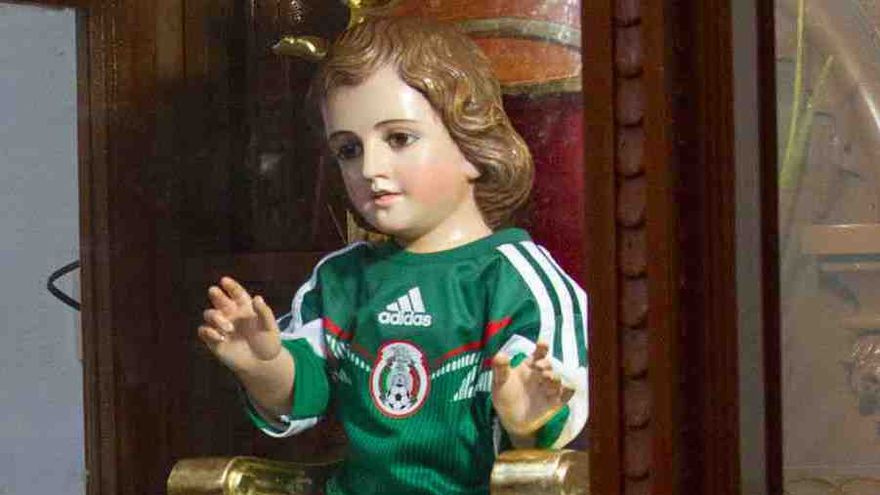 En el tradicional barrio de Tacuba, en la zona poniente de Ciudad de México, en la Iglesia de San Gabriel Arcángel, los feligreses mexicanos "encomiendan" al Niño, que en esta época de Mundial tiene atuendo de futbolista, "que ayude al Tricolor" en la cancha.