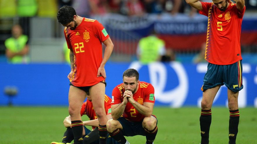 Marca afirma en portada: "La España de antes", en alusión a los reveses de La Roja en el pasado, y bajo el apunte "Un fracaso con mayúscula", dice: "Todo se acaba. La edad dorada comenzó en el punto de penalti, con una tanda mágica ante Italia, y ahí finalizó, con una tómbola trágica ante Rusia (...). Fue el punto y final a un Mundial disparatado desde el despido de Lopetegui. España hizo todo lo posible por aliarse con el caos".