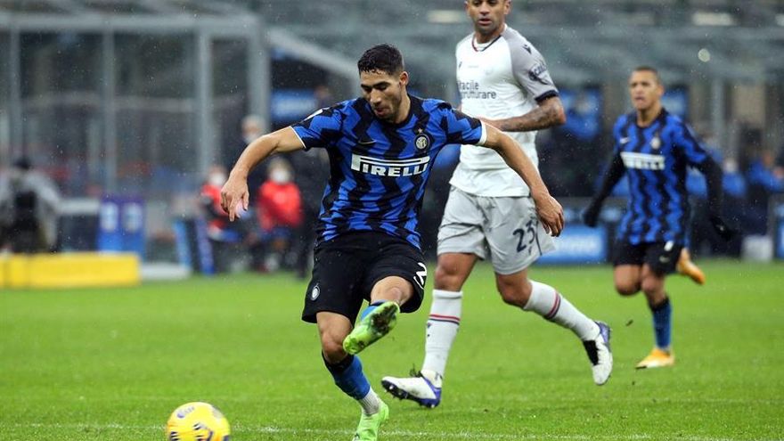 Un doblete del marroquí Achraf Hakimi facilitó la victoria ante el Bolonia del Inter (3-1), que mantiene su persecución al liderato de la Serie A que ostenta el Milán.