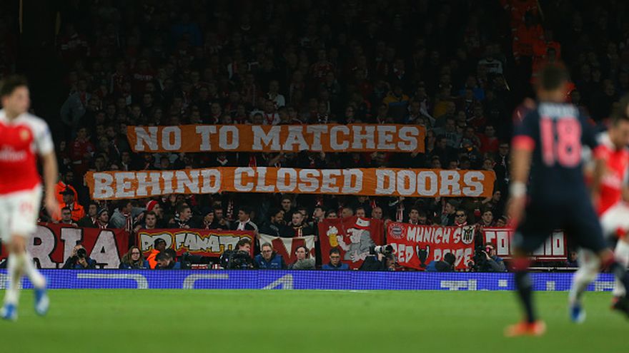 "64 libras por una entrada. Pero sin hinchas el fútbol no vale un penique", rezaba una de las pancartas que desplegaron los hinchas del conjunto entrenado por Pep Guardiola en la grada visitante del coliseo 'gunner'.