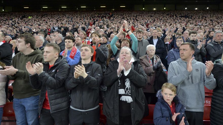 Los aficionados del Liverpool tributaron un minuto de aplausos al jugador del Manchester United Cristiano Ronaldo, baja para este partido pendiente de la 30ª fecha de la Premier League que les enfrenta este martes, después de la muerte de uno de sus gemelos recién nacidos.