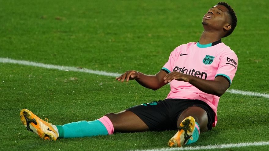 Ansu Fati se lesionó el sábado a la media hora de juego (33) al recibir una carga en el área de Aissa Mandi, sancionada con un penal que falló Antoine Griezmann en el encuentro contra el Betis de la 9ª jornada de LaLiga (5-2).