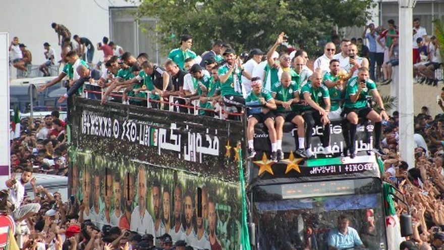 Al grito de 'One, two, three, viva l'Algérie' (Uno, dos, tres, viva Argelia), los aficionados ovacionaron a sus héroes.
