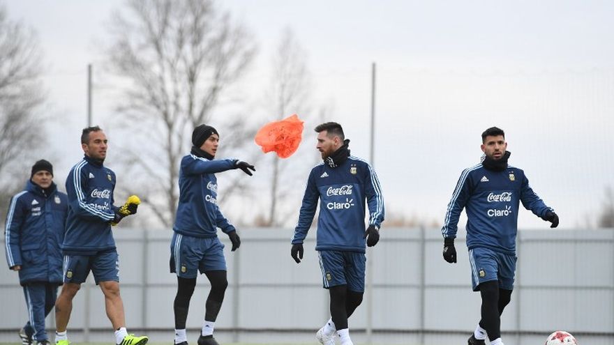 Argentina se preparó esta semana en el campo de Spartak de Moscú. Desafió heladas temperaturas bajo cero. Se vio a los futbolistas abrigados con guantes, bufandas y calzas largas debajo de los pantalones cortos.