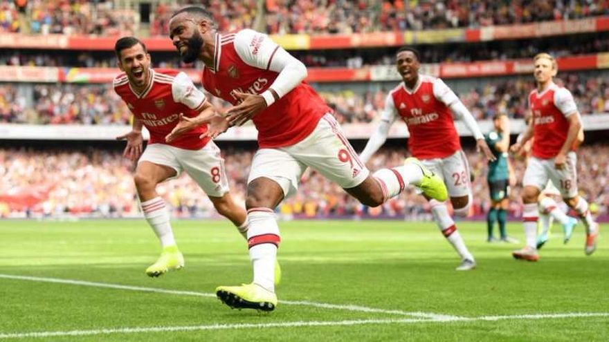 Ausente en la primera fecha, el francés Alexandre Lacazette abrió el marcador con un gol de '9'. Recibió de espaldas al arco, se dio la vuelta, y disparó mientras se iba al suelo superando al arquero Nick Pope (13).