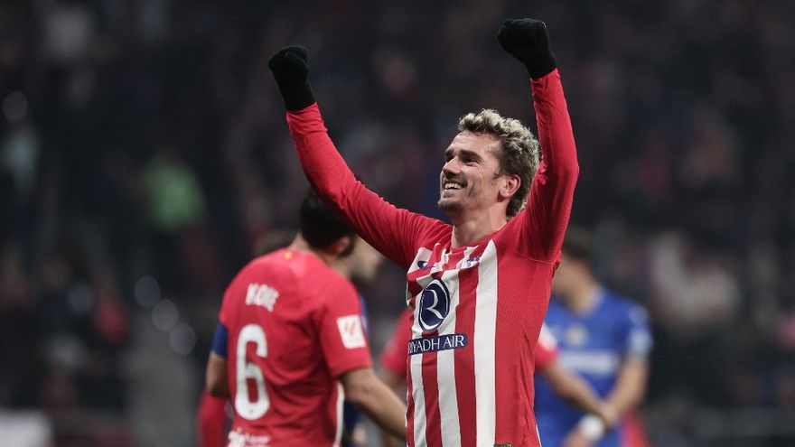 Minuto 44. De repente, ya en inferioridad numérica, el Atlético concretó su mejor salida de balón de todo el choque hasta entonces, vertiginoso, preciso, desde Llorente, ya en el interior, a Riquelme, cambiado ya al carril derecho, desde el que puso un centro maravilloso desde todas las percepciones posibles. Una invitación al gol de Griezmann, que remató con todo, lanzándose para conectar con la izquierda el 1-0. Incontestable. No necesitó más.
