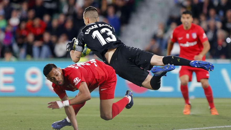 De inicio, el Elche también quería los tres puntos que garantizaran su permanencia y salió a presionar arriba el juego del Atlético, al que no le costó demasiado superar el acoso local.