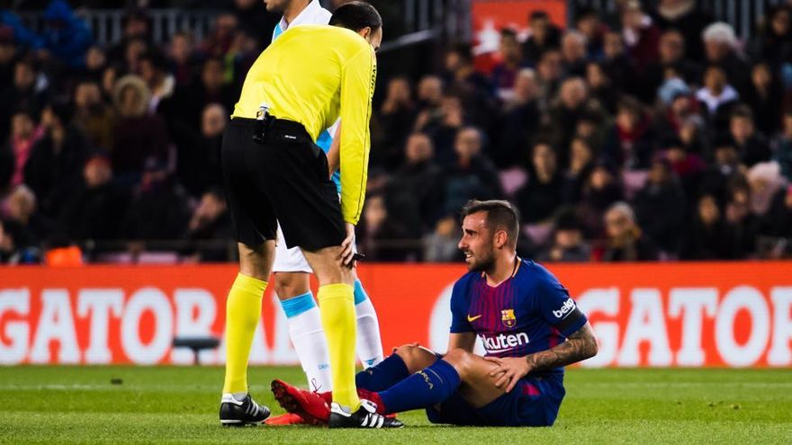 "Paco Alcácer estará unas tres semanas de baja. El delantero azulgrana ha sufrido durante el primer tiempo del Barça-Deportivo una lesión muscular en el recto anterior de la pierna izquierda, que le impedirá cerrar 2017 jugando al fútbol", explicó el Barça en un comunicado.