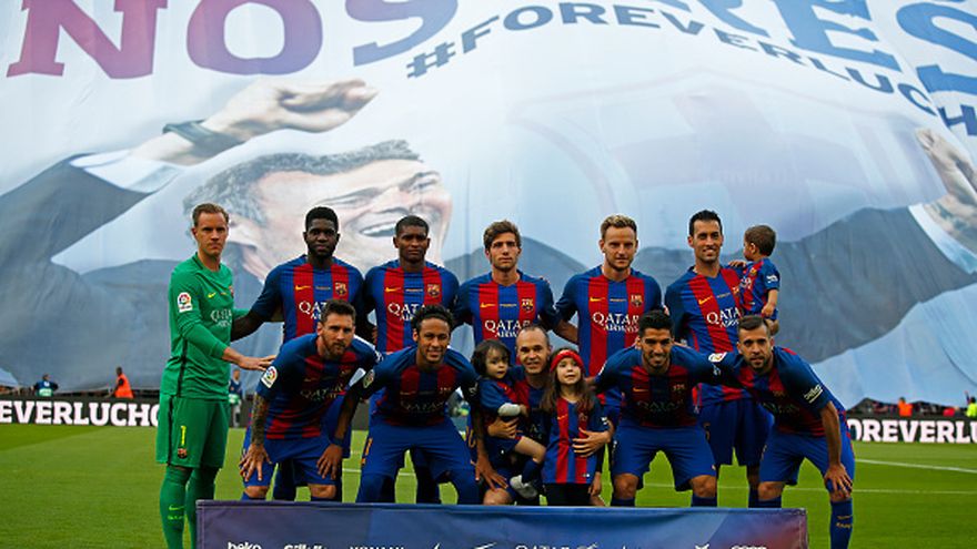 FC Barcelona: Cillessen - Mascherano, Piqué, Umtiti, Jordi Alba - Sergio Busquets, Rakitic, Iniesta - Messi, Paco Alcácer, Neymar. Entrenador: Luis Enrique Martínez