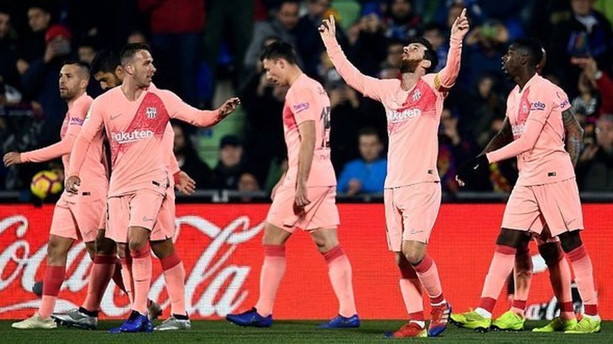 El Barcelona derrotó por 2-1 al Getafe y sumó una victoria que permite al líder de la Liga dejar a uno de su archirrival Real Madrid a 10 puntos, después de que los blancos perdiesen en casa 2-0 ante la Real Sociedad.