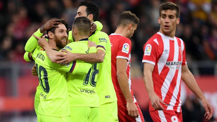 Sin hacer un fútbol rutilante, el Barça se llevó los tres puntos de Montilivi con tantos del portugués Nelson Semedo (9) y del argentino Lionel Messi (68), cuando los locales ya jugaban con 10 por la expulsión del colombiano Bernardo Espinosa al ver la segunda amarilla (51).