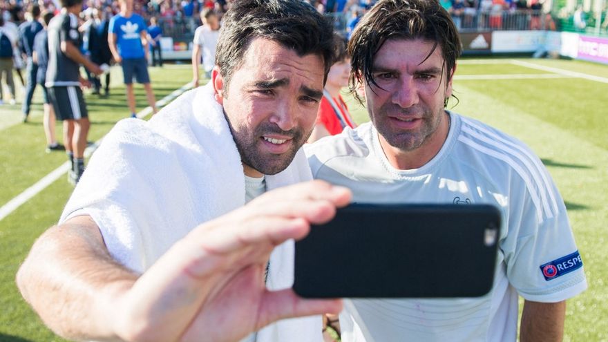 Deco (i) se toma un selfie con Marcelo Salas (d) / AFP