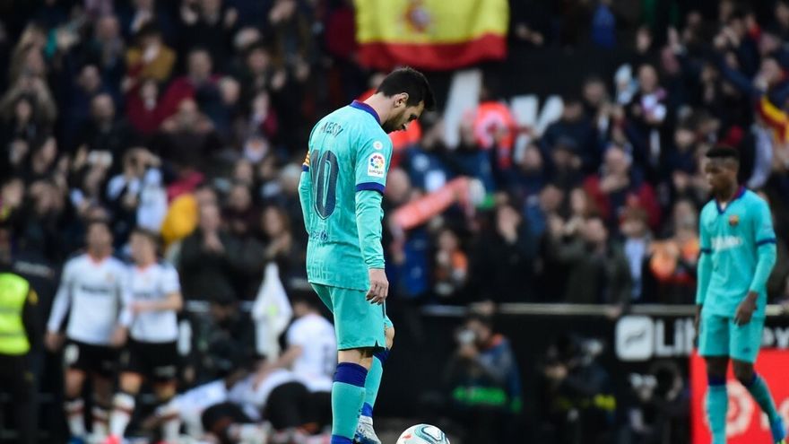 El Barcelona, después de los apuros esta semana para derrotar en la Copa del Rey al Ibiza, de la tercera categoría del fútbol español, perdió este sábado en campo del Valencia por 2-0, en la vigésima primera jornada de liga, y pone en peligro su liderato.