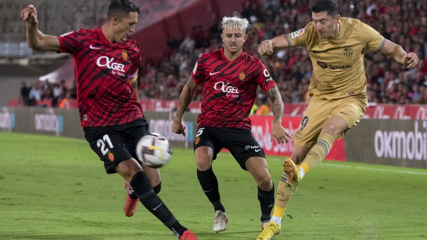 Un gesto técnico extraordinario del polaco Robert Lewandowski, que marcó el único tanto del partido (minuto 20) de disparo pegado al palo tras un gran recorte en el interior del área, y la gran actuación del portero alemán Marc André Ter Stegen salvaron a un Barça que realizó en Mallorca uno de los peores partidos de la temporada.
