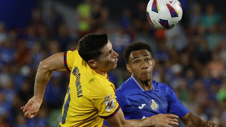El Barça pudo adelantarse en un remate de cabeza forzado de Robert Lewandowski que sacó Gastón también de cabeza casi bajo los palos (62).