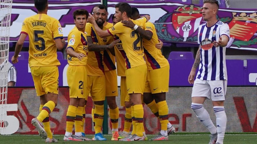 Con un gol del chileno Arturo Vidal al cuarto de hora de partido, el Barcelona (2º) sumó los tres puntos en su visita al Valladolid (14º), lo que permite a los azulgranas mantener abierta la lucha por el título liguero.