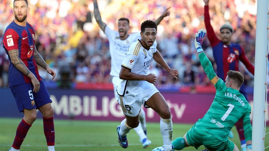 El Barça abrió el marcador con un tempranero gol de Ilkay Gundogan (7), pero Bellingham igualó con un disparo lejano (68) e hizo el 2-1 en el descuento (90+2), manteniendo así al Real Madrid en la cabeza de la clasificación.
