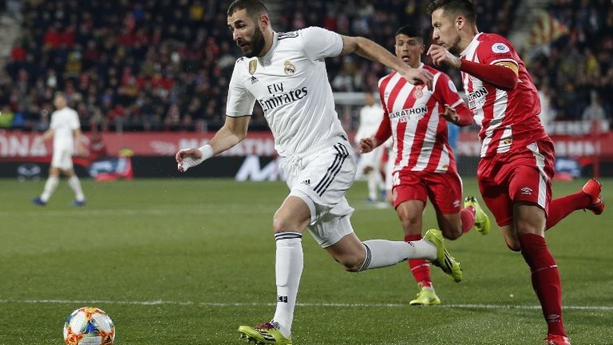 El Real Madrid se clasificó este jueves para las semifinales de la Copa del Rey tras imponerse 3-1 en el campo del Girona, con doblete de Karim Benzema, en la vuelta de los cuartos del torneo del KO.