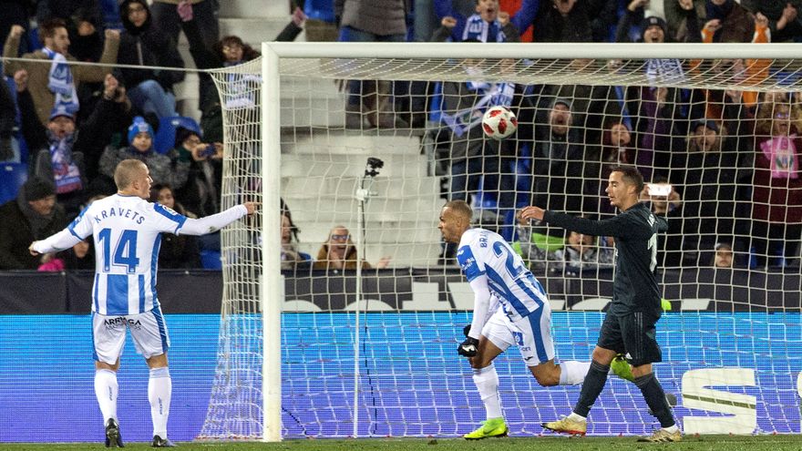 A la media hora llegaba el contragolpe, de hasta cinco contra tres que iniciaba Vinicius con velocidad y acababa Isco con lentitud, y el tanto local que resucitaba por momentos la eliminatoria. Otro centro lateral y otro remate. En esta ocasión de un punta que aumenta la dinamita del Leganés. Braithwaite al segundo intento marcaba a placer tras la parada de Keylor a Merino.
