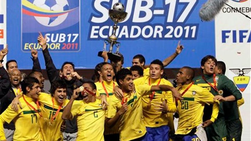 Brasil se coronó el sábado campeón del Sudamericano Sub17 al vencer 3-2 a Argentina, mientras Uruguay es subcampeón tras empatar 1-1 con Ecuador. Las cuatro selecciones se adjudicaron anticipadamente las plazas que otorga el torneo para el Mundial y los Juegos Panamericanos de la categoría, que se disputarán en México. Al cierre de la jornada, Brasil confirmó su superioridad en el campo de juego con insistentes llegadas al arco rival. A los 28 minutos un potente cabezazo de Leo abrió el marcador a favor de los auriverdes, pero el argentino Eduardo Báez descontó tres minutos después. El festejo del empate aún no terminaba cuando a minuto seguido Guilherme anotó para mantener la ventaja de los brasileños. Matheus puso la tercera anotación para el equipo carioca a los 77 minutos y dos minutos más tarde el argentino Federico Andrada logró la segunda para los gauchos. Previamente, Uruguay y Ecuador igualaron el marcador con anotaciones del charrúa Juan San Martín a los 19 minutos. Por el anfitrión descontó, con tiro penal, Juan Francisco Cevallos a los 57. En el partido de arranque y sin la presión de buscar una clasificación, Colombia doblegó a Paraguay con goles de Fabián Cuero, a los 4 y 12 minutos, mientras Alan Benítez marcó el tanto de honor para Paraguay a los 90. Brasil se quedó al tope de la tabla con 13 unidades, Uruguay sumó nueve, Argentina siete y Ecuador seis. Colombia y Paraguay, ambos eliminados, se quedaron con cuatro y un puntos, respectivamente.