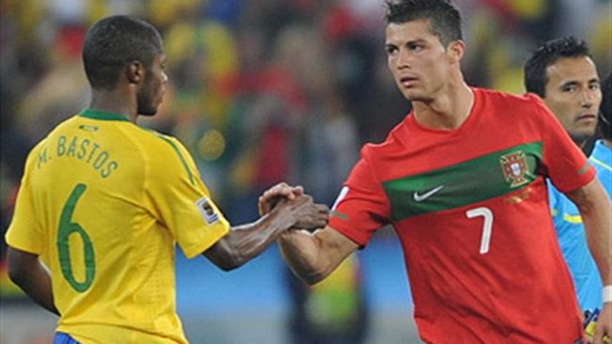 Brasil ganó su grupo el viernes tras empatar sin goles con un Portugal en el que Cristiano Ronaldo sigue sin aparecer y quedó a la espera de que se defina la zona de España y Chile, para saber quién será su rival en la segunda ronda de la Copa Mundial. El empate clasificó también a Portugal como segundo del Grupo G, en el que los brasileños cosecharon siete puntos y los portugueses cinco. Costa de Marfil, que buscaba un milagro, finalizó tercera con cuatro unidades tras doblegar 3-0 a Corea del Norte, que perdió sus tres partidos. Por tratarse de un choque casi de trámite, Dunga le dio descanso a Robinho y tampoco jugaron en Brasil Kaká, suspendido, y Elano, lesionado. En su lugar entraron Julio Baptista, Dani Alves y Nilmar. Brasil tuvo la iniciativa todo el encuentro. Sin embargo, hizo un fútbol lento que no sorprendió ni produjo muchas acciones de peligro. Portugal apostó al contragolpe, tropezando con una defensa firme y tampoco inquietó demasiado al arco contrario. Maicon se hizo sentir con sus subidas por la derecha en el primer tiempo, pero con el correr de los minutos el lateral del Inter de Milan desistió de buscar el ataque y Brasil se quedó sin una de sus principales armas ofensivas. Una escapada de Maicon generó la situación más clara de gol que tuvo Brasil, cuando su centro encontró a Nilmar solo frente a Eduardo. El portero alcanzó a manotear el balón, que rebotó en el travesaño y regresó al terreno. Poco después Luis Fabiano cabeceó desviado otro centro de Maicon desde buena posición. De allí en más, Brasil no volvió a inquietar el arco portugués hasta poco antes del silbato final, en que Eduardo desvió esforzadamente un disparo de Ramires que rebotó en un rival y casi termina adentro. Cristiano Ronaldo cumplió otra actuación para el olvido. Apareció poco y no se complementó con sus compañeros. Ensayó tres tiros libres y algún remate con pelota en movimiento desde lejos, sin consecuencias. Libró un duelo aparte con Lucio, a quien superó un par de veces en velocidad. Las jugadas no prosperaron, aunque una de esas acciones casi termina en gol. Lucio alcanzó a pellizcarle el balón, solo para mandarlo al centro del área, donde esperaba Raul Meireles. El portero Julio César alcanzó a tapar el remate cuando parecía que caía el arco brasileño. Julio César respondió bien además ante un tiro de Simao, quien ingresó en el complemento.