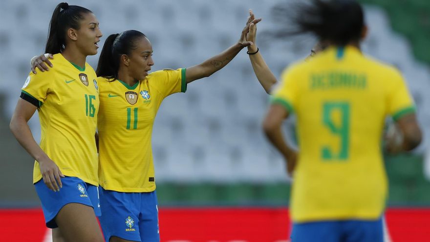 La dirigidas por la sueca Pia Sundhage se impusieron sobre las charrúas en el Estadio Centenario de Armenia (centro-oeste) con dos goles de Adriana y uno de Debinha.