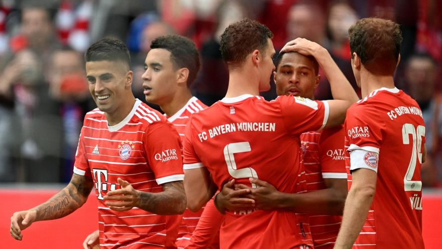 El gigante bávaro es el dueño de su destino. Los goles de Thomas Müller (21), Joshua Kimmich (penal, 29), Serge Gnabry (50 y 65), Mathys Tel (80) y Noussair Mazraoui (90+2) le dieron su 20ª victoria en la Bundesliga.