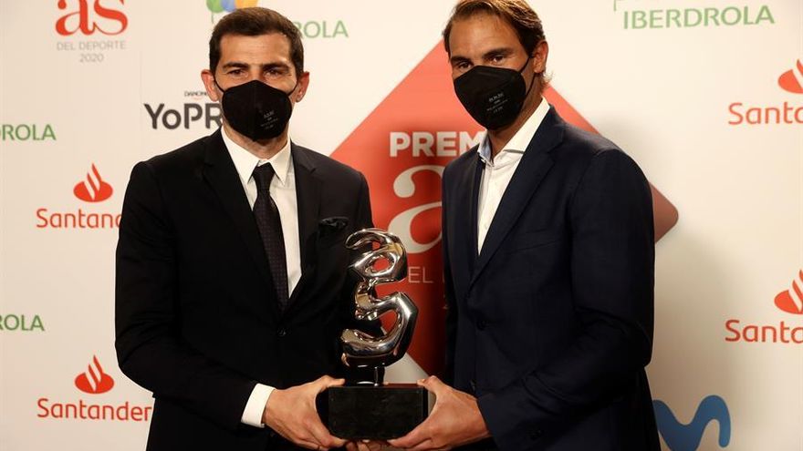 Casillas asistió este jueves a la gala de los premios AS y recibió el galardón del periódico deportivo que reconoce la trayectoria profesional del deportista.
