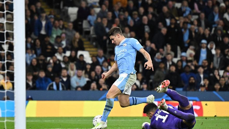 Un minuto después del arranque de la segunda mitad, Julián Álvarez firmó una pequeña obra de arte: aprovechó un pase al hueco de Erling Haaland para, casi sin espacio ni tiempo, ser capaz de regatear y meterla en la portería (47).