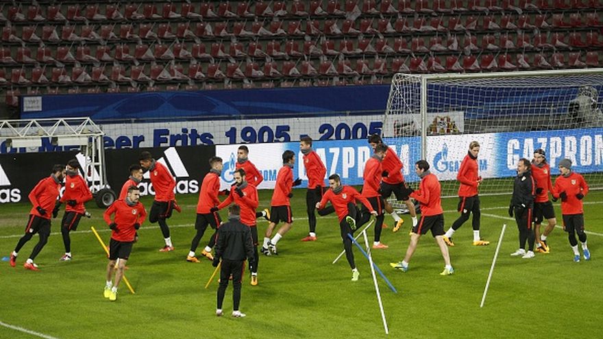El Atlético de Madrid completó este martes su último entrenamiento previo al partido de ida de los octavos de final de la Liga de Campeones contra el PSV Eindhoven y tomó contacto con el estadio Philips, el escenario de ese encuentro, con sus 19 jugadores disponibles sobre el terreno de juego.