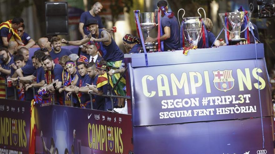 Miles de hinchas del Barcelona salieron el domingo a las calles del centro de la Ciudad Condal para celebrar la conquista de la quinta Copa de Europa, una que coronó un histórico triplete de títulos del club azulgrana.