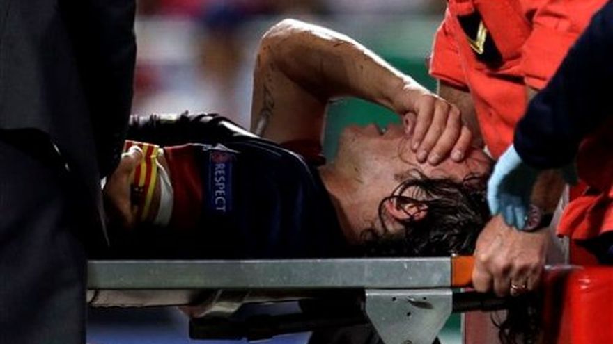 El capitán del Barcelona Carles Puyol se perderá ocho semanas de competencia después de dislocarse el codo durante la victoria 2-0 de su equipo en un partido de Liga de Campeones contra el Benfica. El club anunció que Puyol pasó la noche en un hospital de Barcelona y fue dado de alta el miércoles. Después de estar lesionado varias veces en meses recientes, Puyol regresó el martes después de más de dos semanas de baja hasta que cayó aparatosamente a los 75 minutos cuando intentaba cabecear un balón en el área del Benfica. Su dolor era evidente cuando lo retiraban en camilla mientras los aficionados del estadio Da Luz se ponían de pie para aplaudirlo. Puyol se perderá el clásico del domingo contra Real Madrid en la liga española. También estará ausente hasta en tres partidos de Liga de Campeones y no podrá jugar los partidos clasificatorios de España este mes contra Bielorrusia y Francia. Su baja se suma a la de Gerard Piqué, el otro marcador central titular del Barcelona. El equipo ha tenido que improvisar en esta primera parte de temporada con Javier Mascherano y Alex Song como pareja de centrales.