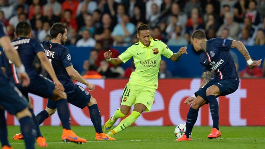 14' Jugada extraordinaria de Andrés Iniesta que se escapó de tres defensas del Paris y le da un magistral pase a Neymar que tras dejar atrás a Salvatore Sirigu mete la pelota en la portería.