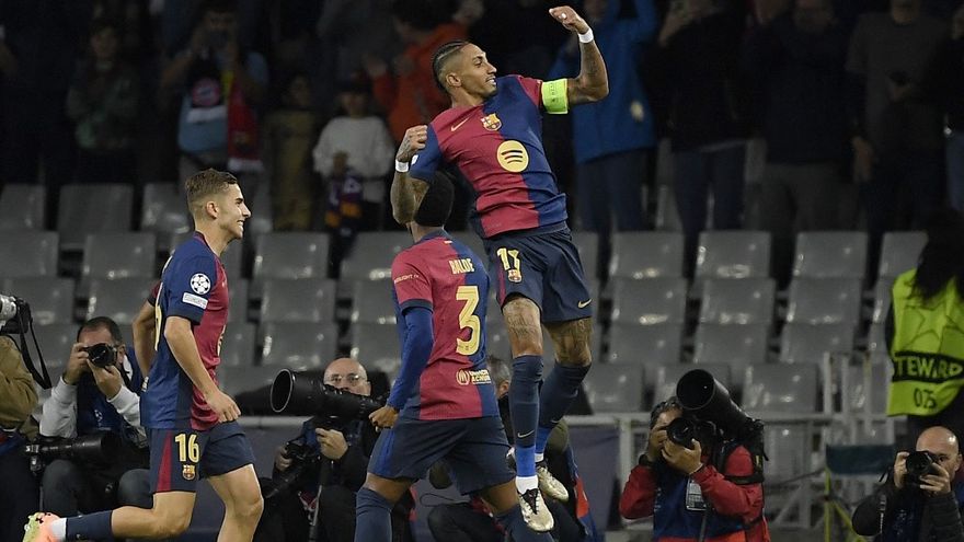 Raphinha celebra noche mágica en Champions League / AFP